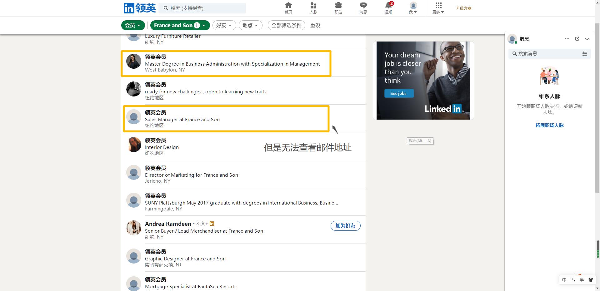 但很烦的是,由于领英人脉限制,你根本看不到他们大部分的联系方式,甚至名字也不显示,更不能加为好友。