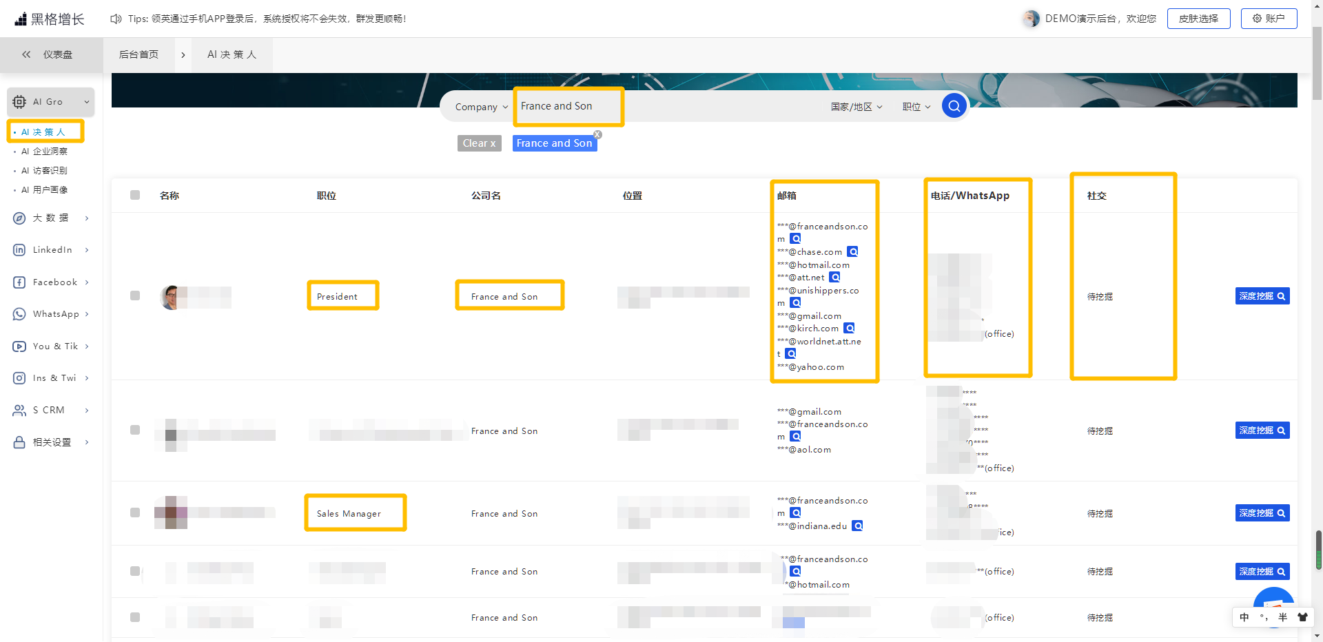 网站的联系方式一般属于“客服”性质,但我更想要他们公司的决策者/采购商的联系方式呢?