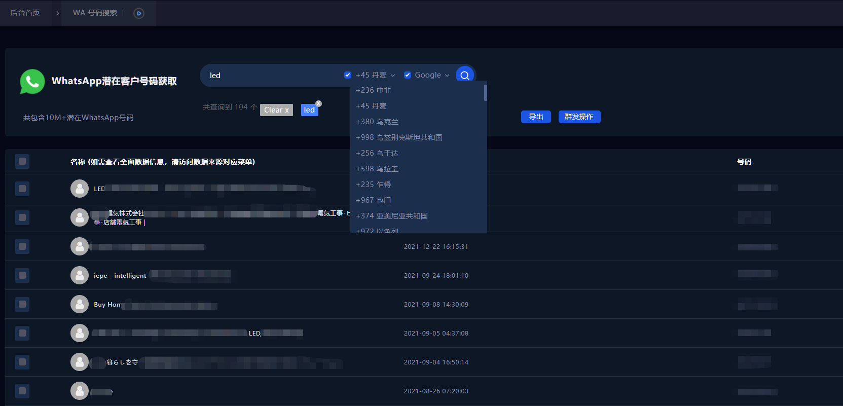 数据量:包含10M+量级的潜在WhatsApp号码