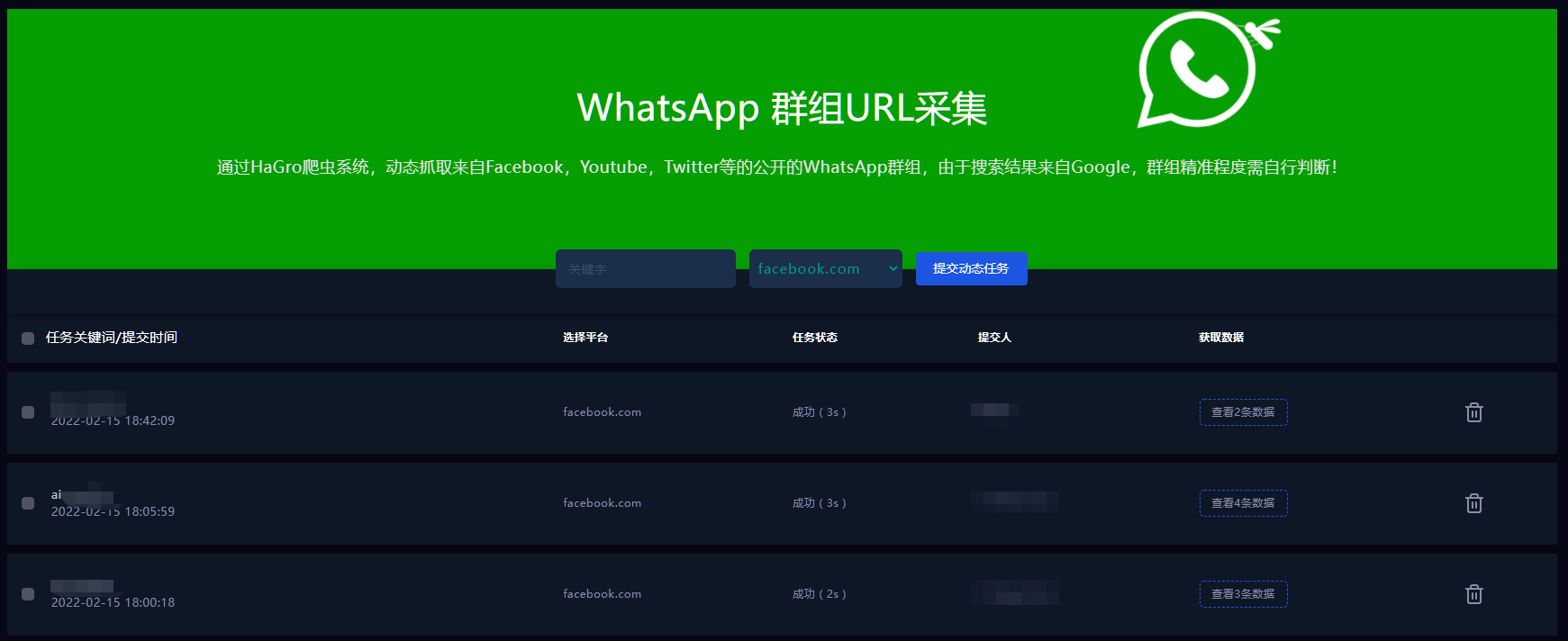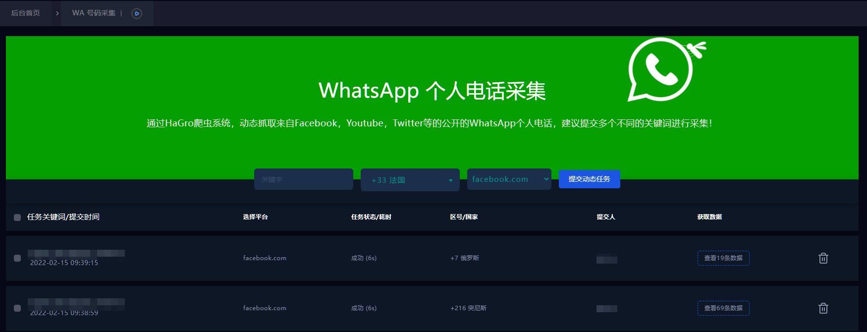 通过HaGro爬虫系统,动态抓取相关社交平台上实时更新的WhatsApp号码,先人一步掌握最新潜客信息。支持导出和群发,减少开发耗时,为外贸人的客户资源库添柴加火。