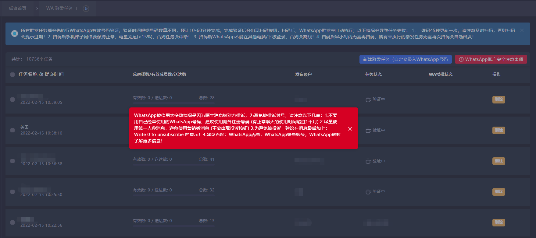 国外的社交账号都有因操作不当而惨遭封号的危险,WhatsApp也不例外。因此黑格增长设置了客户上限和消息群发频率,以时间间隔和客户发送数的硬性指标来消息群发,降低被平台认为是机器操作的封号风险。