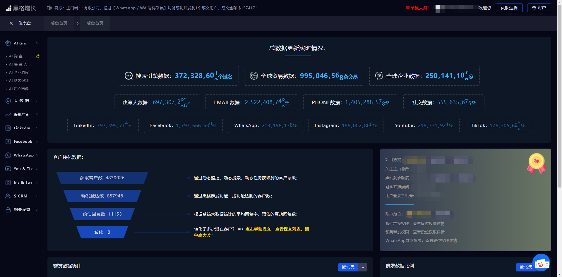 黑格增长能很好地支持“质发”和“量发”,双管齐下。在群发时就能抽出时间来研究精准客户,大大提高时间的利用效率。
