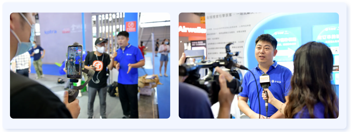 在大会期间,多家媒体以多种形式对全球搜展位进行报道,蒲总在接受采访时表示:数字贸易时代下,企业更应该牢牢抓住线上营销的优势,借助国家政策、科技成果等让中国品牌在世界舞台上大放异彩,而全球搜在外贸推广服务领域已经深耕11年,对外贸行业的热爱以及专业度都在时间的累积中不断加深。
