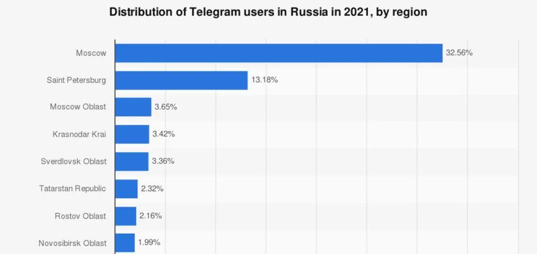 (2021年,俄罗斯Telegram用户分布,按地区)