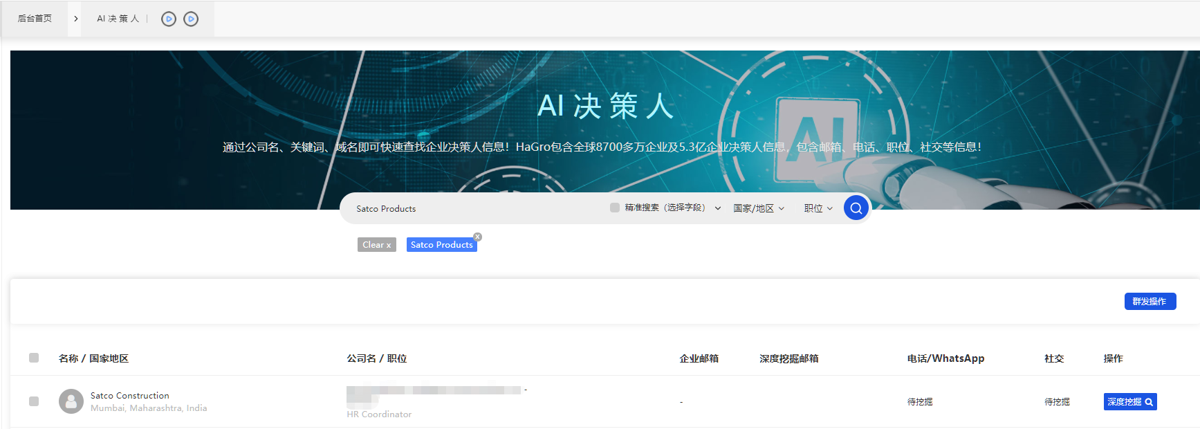 所以,黑格增长在海关数据上直接配套了AI决策人功能,帮助你轻松获取客户公司关键决策者的联系方式。因为决策人才有采购的权利,这瞬间提高开发效率。