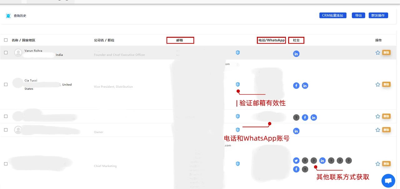 如电话号码、全球最受欢迎代替短信发送的WhatsApp账号,其他社交媒体账号等,甚至还可通过Google地图找到联系地址,有效帮助外贸企业与潜在客户搭建联系。