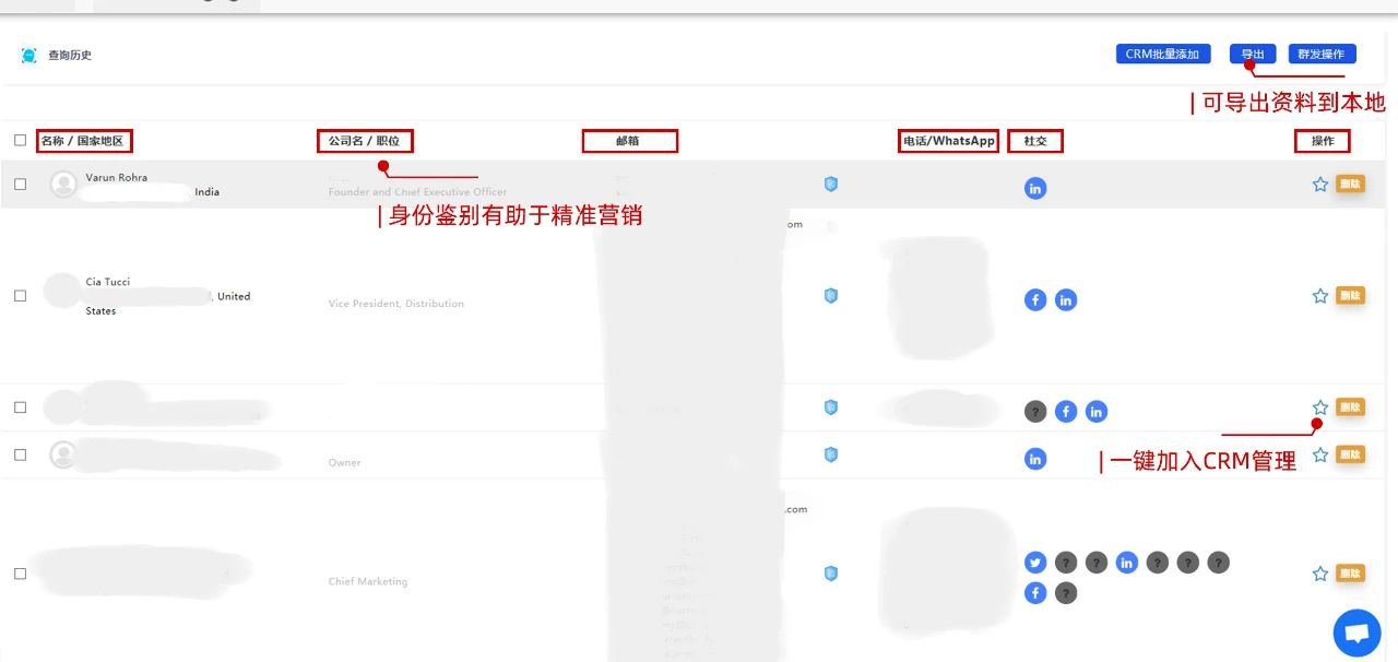黑格增长上的潜客信息有真实来源和身份介绍,有助提高获客精准度;一键获取联系方式和群发系统,能极大程度帮助提升开发效率。