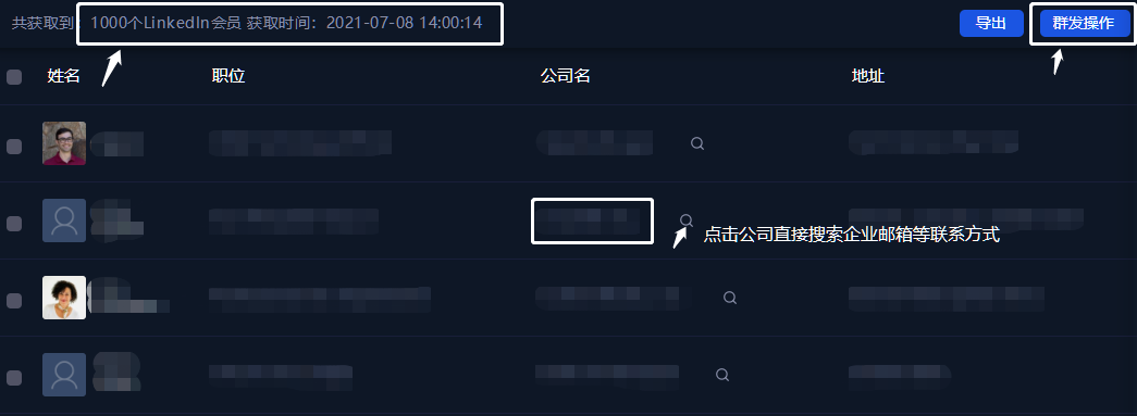 HaGro【黑格增长】V3.0 只需提供客户名/公司名/公司域名或者动态帖子的URL(动态帖子的链接地址),通过新增的筛选功能,多维度过滤、100%领英用户可查询、可查询企业所有领英会员(100%),帮助您运用多种联系方式渠道,更便捷、有效、精准的锁定客户、群发客户!