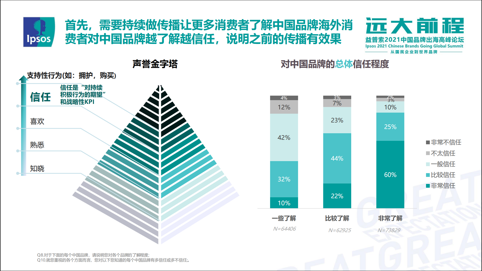 根据益普索Ipsos发布的2021年《益普索中国品牌全球信任指数(GTI)》报告显示,2021年中国品牌在海外市场的整体信任度都有提升,信任指数为41%,比2019年上升了三个百分点。总体来看,中东和东南亚国家(RCEP成员国)的消费者是最信任中国品牌的,而中国品牌在新兴国家市场的信任状况表现较好!超半数如泰国、俄罗斯都超过了32%;发达市场的提升更快,英国、美国、德国、日本对中国品牌的的好感度均有上升。