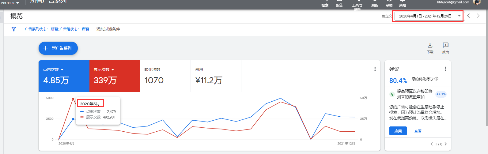 上方是耐斯特在2020年5月至2021年12月的广告系列数据展示次数高达