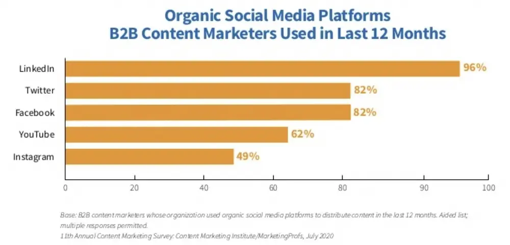 95% 的 B2B 内容营销人员使用 LinkedIn 进行有机内容营销,使其成为评价最高的社交媒体平台。