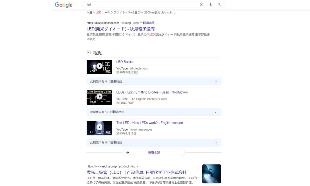 之前,有谈到谷歌只显示某些关键字的视频结果,那是因为谷歌有规定“视频结果关键字”。比如搜led可以,但搜led sale就不会有视频显示。