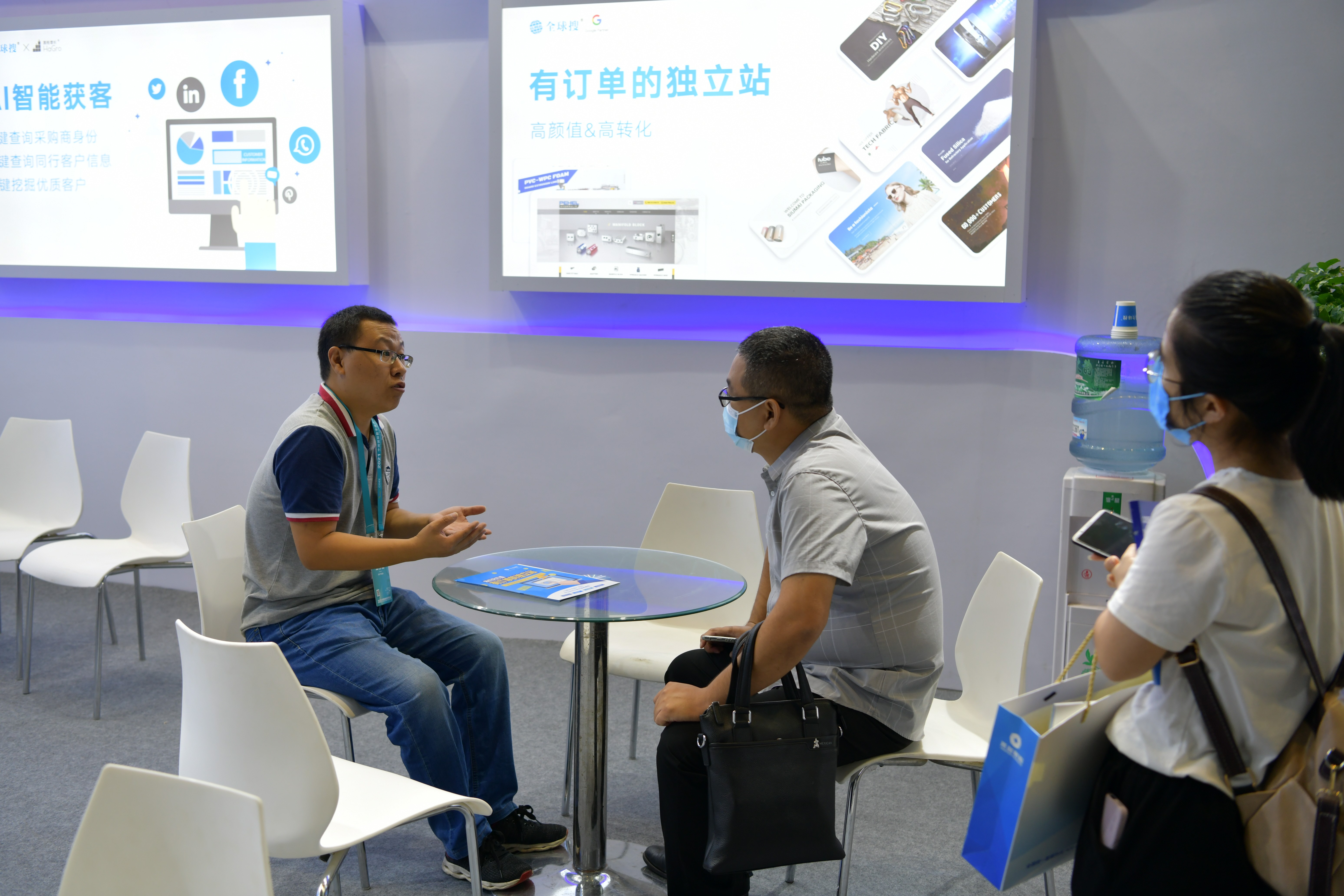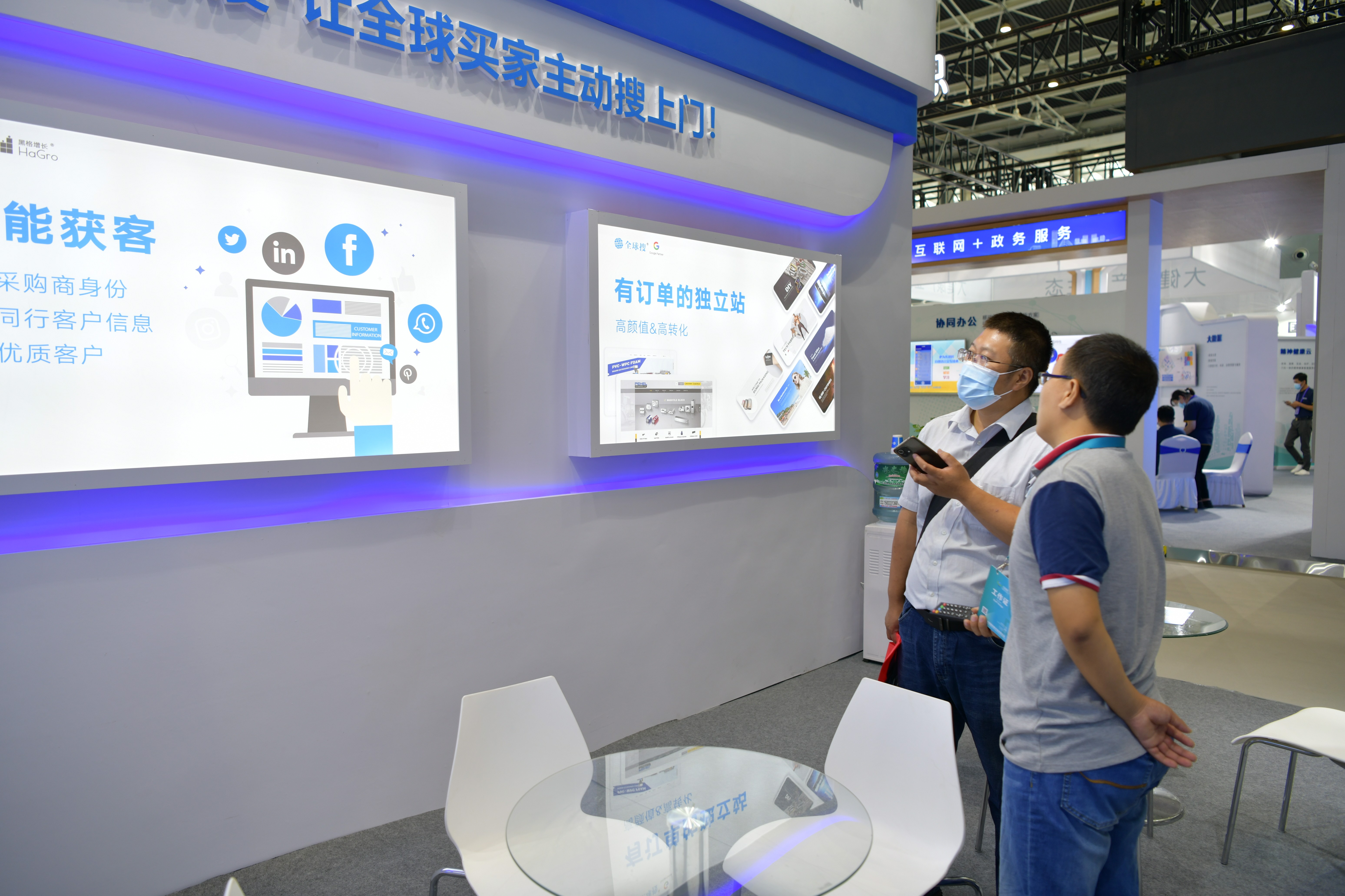 在本次数博会展示区域,全球搜竭力打造独立站出海、Google首页霸屏、109种语言、AI智能获客四大领域的核心应用与实践成果,旨在用更多的成功案例以及成熟的服务经验赋能外贸企业在线上获客方面闯出一片广阔天地。
