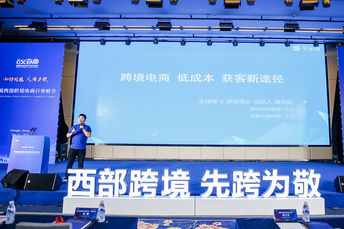 11月12日,由成都市跨境电子商务协会主办,以“西部跨境 先跨为敬”为主题的2020中国西部跨境电商行业千人峰会在成都隆重召开。谷道科技作为特邀嘉宾应邀参加了此次盛会,全球搜&黑格增长创始人CEO蒲竞超先生在峰会上发表了精彩的主题演讲。