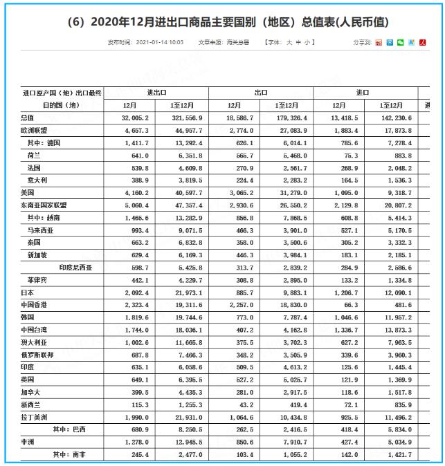 1月14日,海关总署发布的数据显示,2020年外贸进出口明显好于预期,外贸规模再创历史新高。