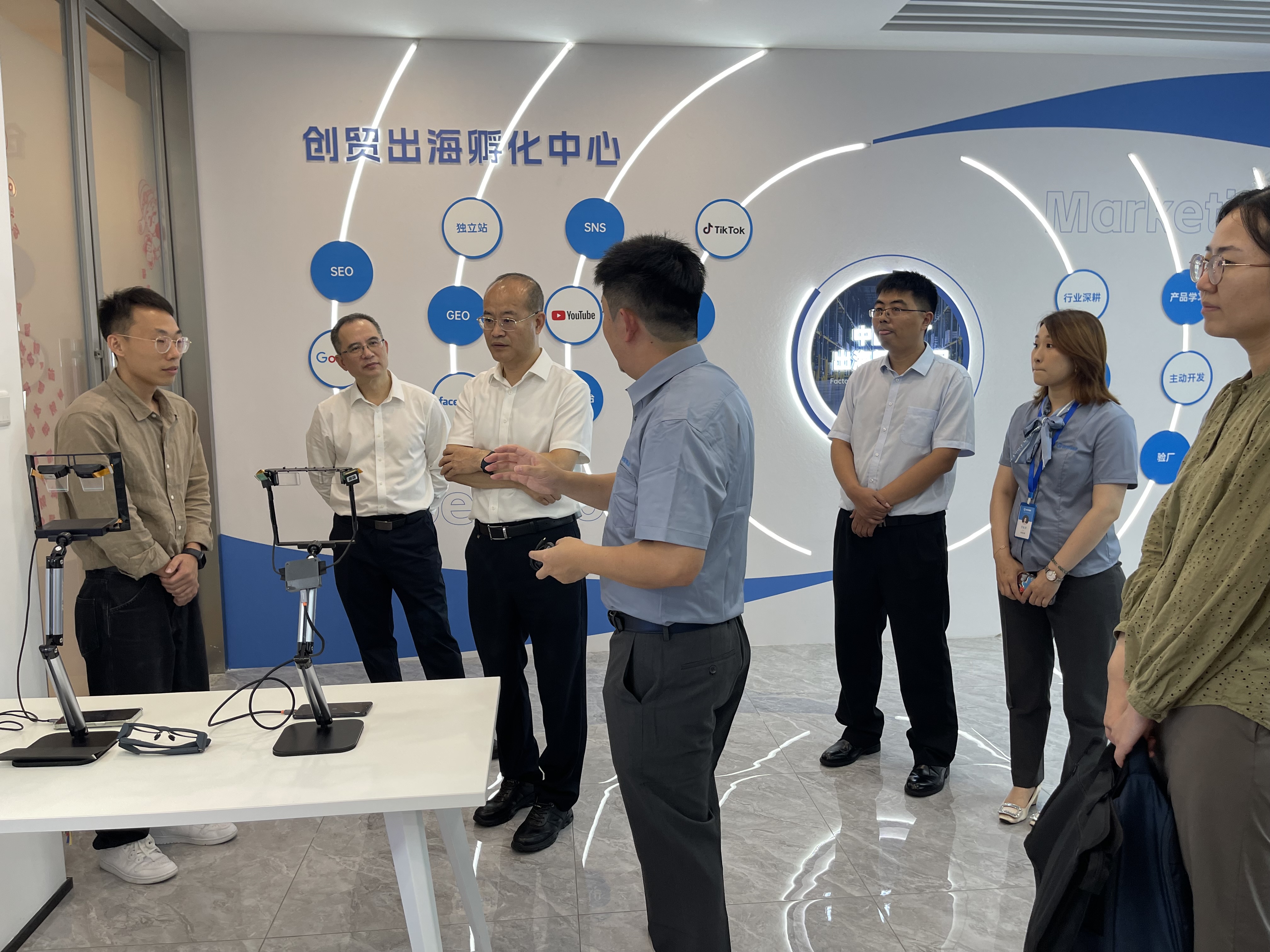 其中在参观创贸出海孵化中心时,蒲总介绍:创贸集团基于自身技术优势以及出海资源整合优势,提供从推广-询盘-发货-收款全流程出海孵化服务,这种模式有效降低工厂出海的前期投入与运营门槛,实现双方基于订单结果的共赢合作,目前该服务在南通,深圳,成都,济南等地逐步落地,备受外贸零基础工厂型企业的青睐。