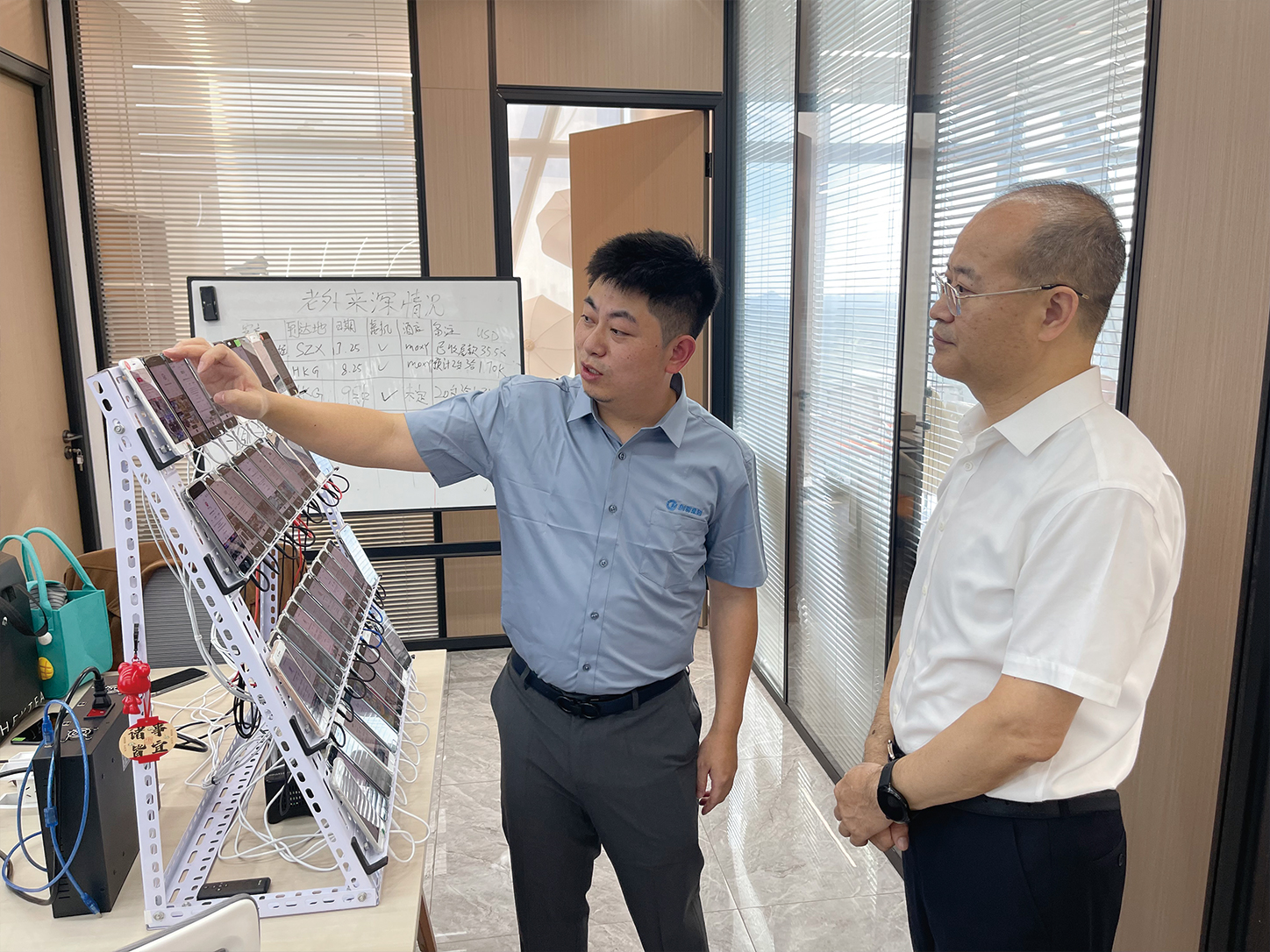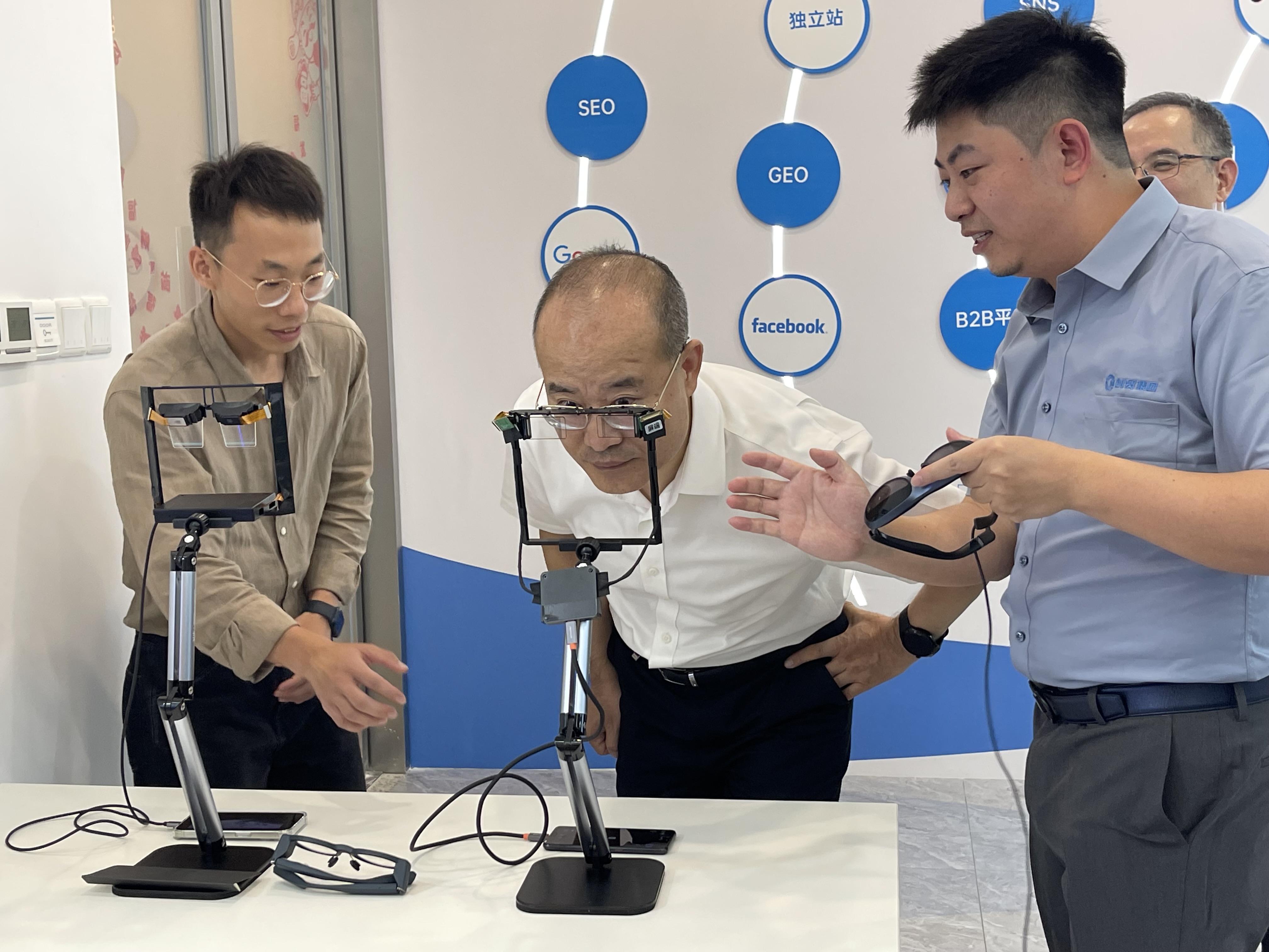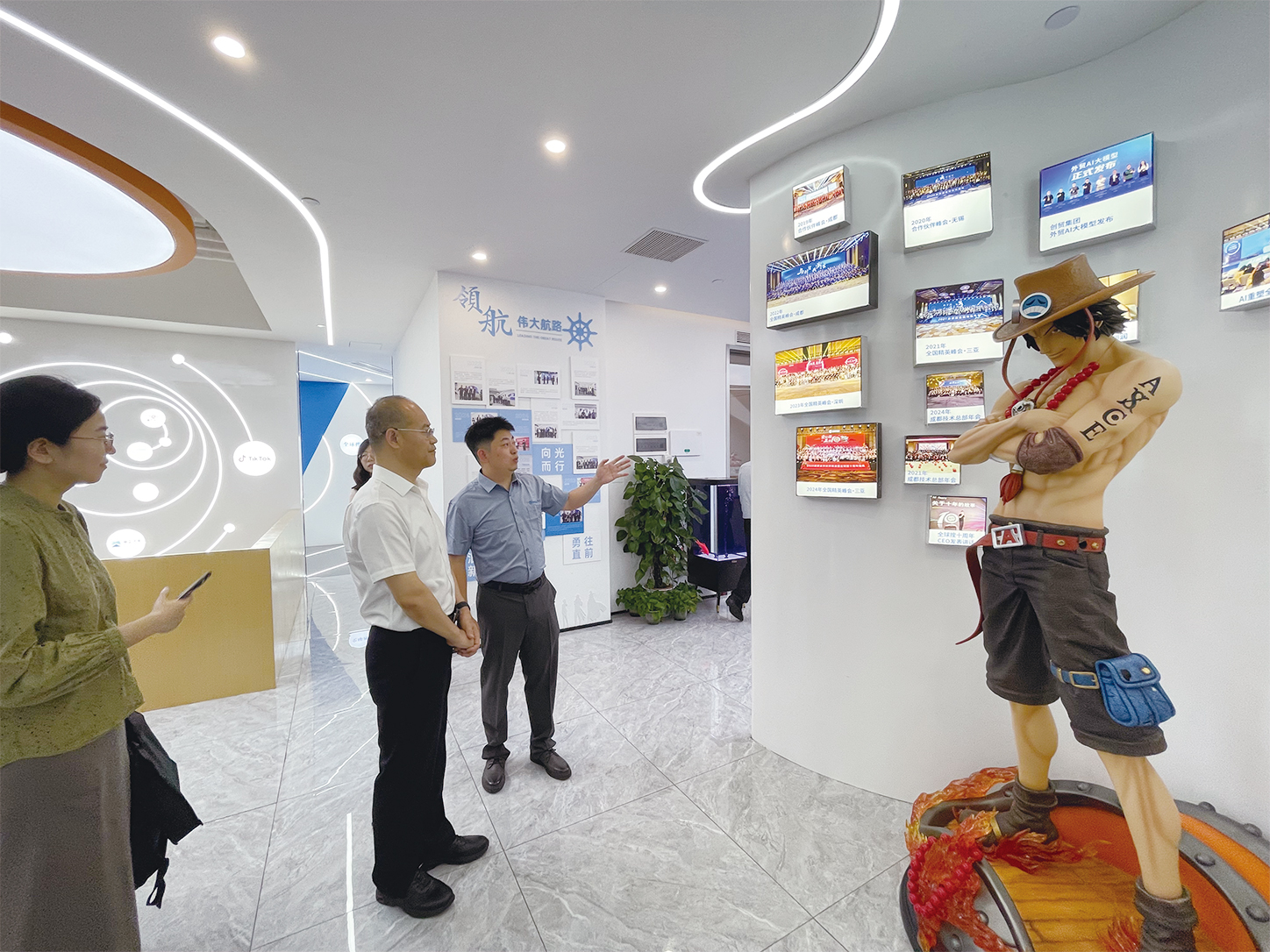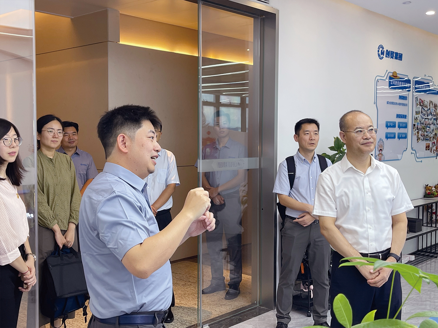 参访现场,蒲竞超陪同王司长一行先后参观了企业发展历程展示区、外贸数字化服务案例长廊及出海孵化中心。过程中,蒲竞超详细讲解了AI人工智能在助力外贸企业降本增效、开拓新兴市场等场景中的创新应用 —— 从智能分析采购需求实现精准匹配,到高效生成符合目标市场语言习惯与文化背景的多语种营销材料,生动展现了技术赋能外贸的实践成果。
