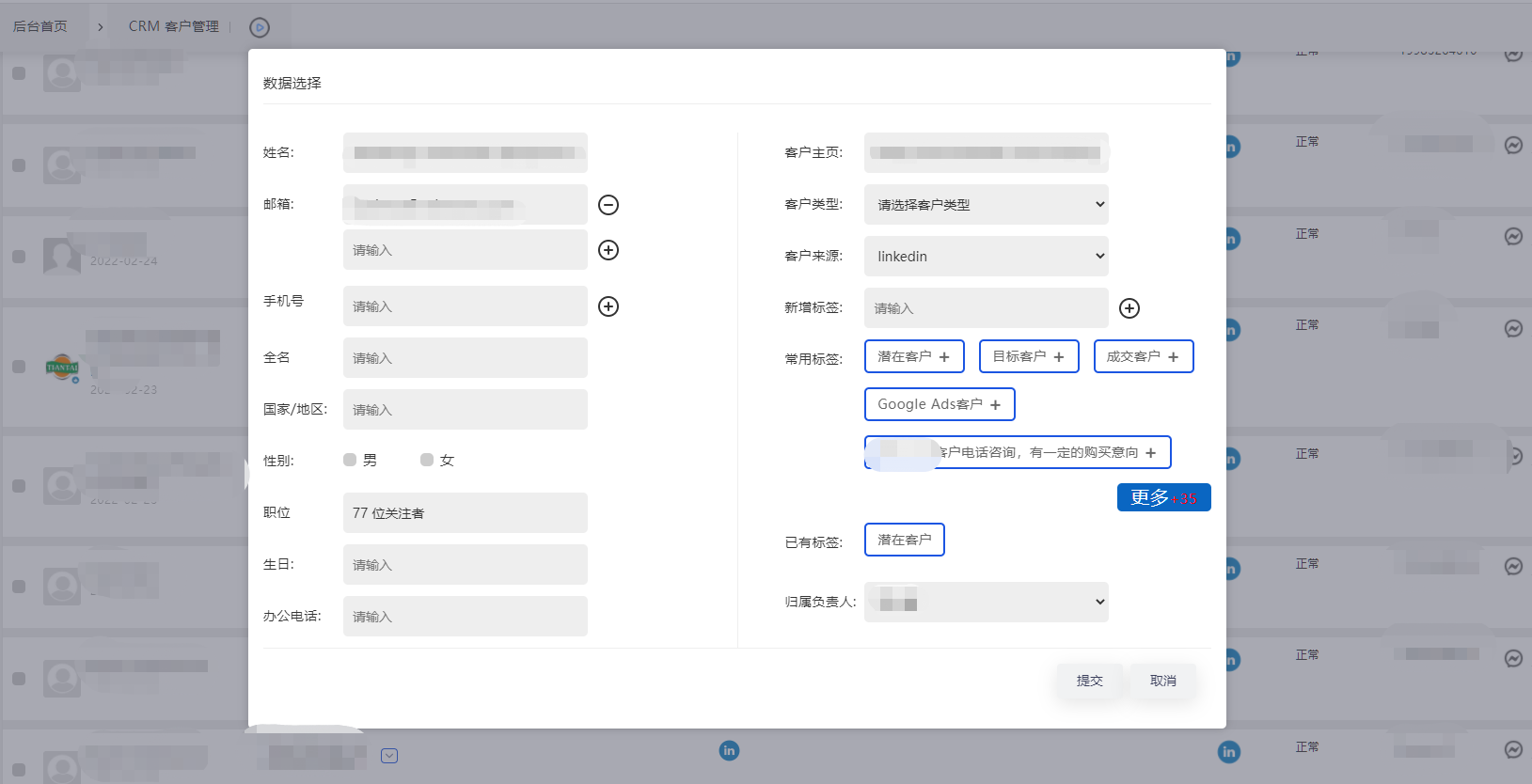 比如看他社交平台的活跃情况,公司官网的情况等等,大致判断是否是潜在客户。