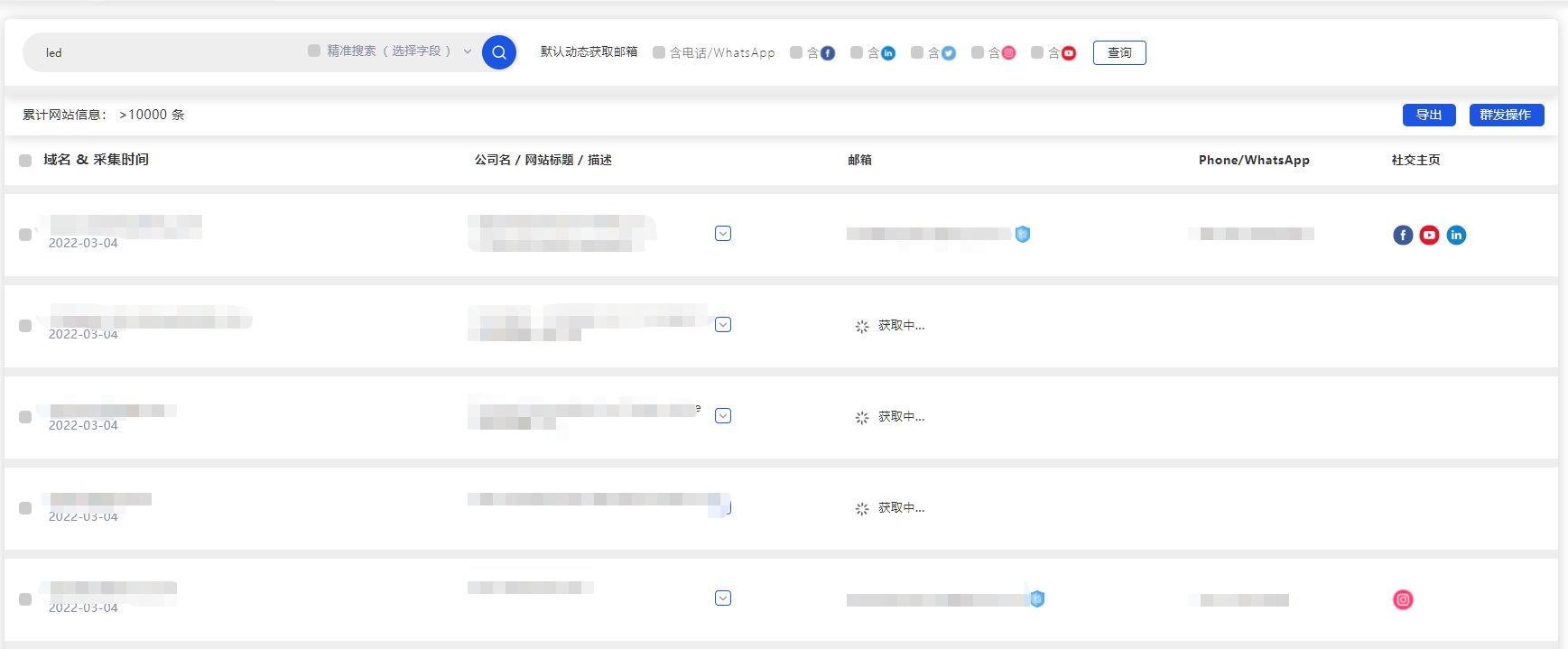 在深度上,是一种纵向收集。比如联系方式往下延伸还有官网链接、FB账号、电话号码、邮箱等,公司概况如公司地址、组织架构、负债情况等等。