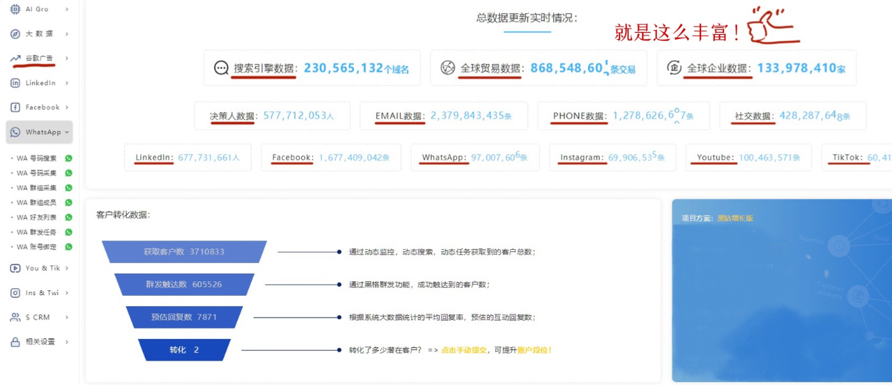 在WhatsApp上一个个搜索潜客,筛选再营销。工作量巨大不说,搜索出来的客户精准度还不高,效果差强人意。