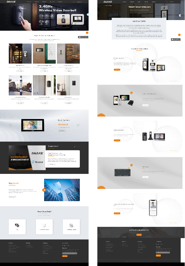整个页面的初衷是为了更直接明了的向访客传递可视信息,所以页面的排版上简约而不失大气。配色用了橙色和深灰色,这是根据企业方的诉求来考虑的,和品牌logo也互相呼应。
